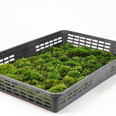 オオホウオウゴケの大トレーです。鳳凰の羽のような形から名付けられました。大型の苔で、葉はしっかりとしていて透明感があるオオホウオウゴケはテラリウムの素材にぴったりです。体験教室やワークショップなど一度にたくさん必要な方におすすめの大容量サイズです。