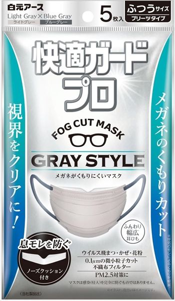 ●ノーズクッションが息モレを防ぎ、メガネのくもりをカット。●クロスプリーツがアゴを包み、ズレにくく快適に。●スキマなしで徹底ガード。●ふんわり幅広耳ひも。●0.1ミューmの微粒子99%カットフィルター。●グレースタイル(ライトグレー×ブルーグレー)