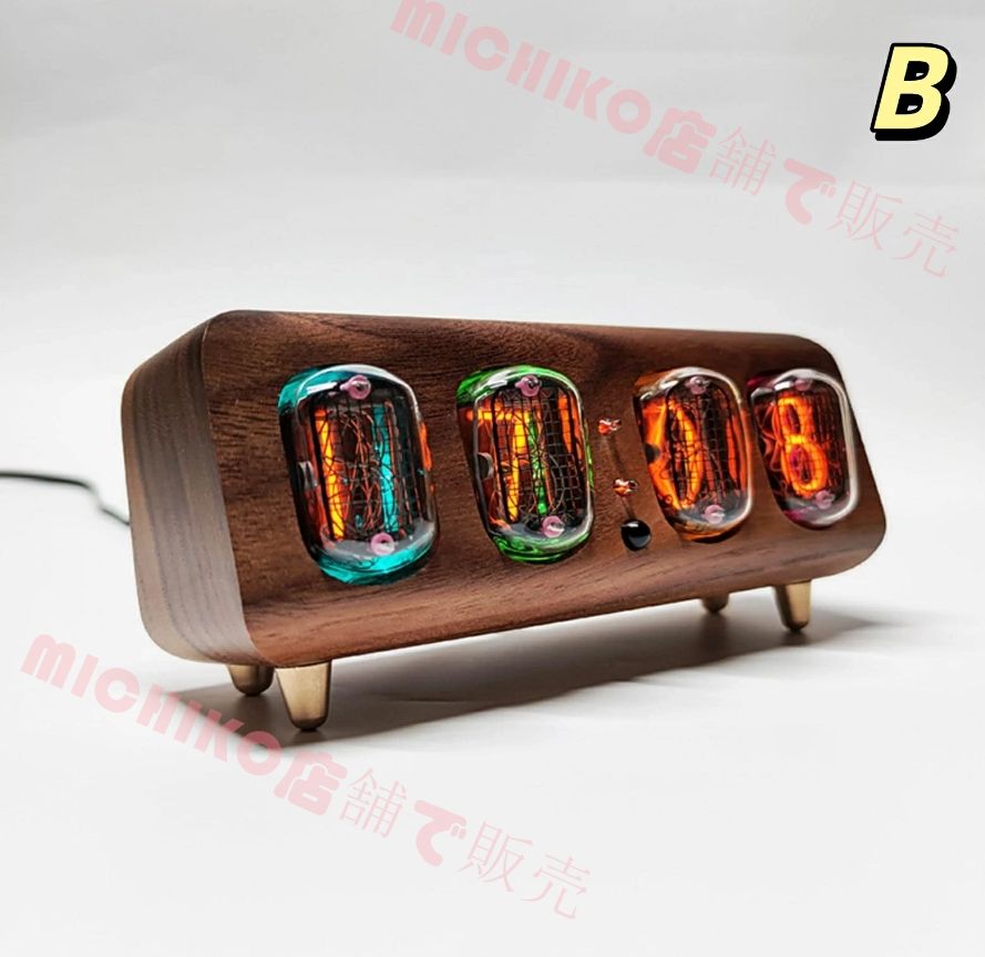 N-12レトロニキシー管時計 ABS 4位光管 リモート 木質時計 クリエイティブな装飾品 プレゼント置き デジタル 七色 LED グラデーション 明るさ調整 木目 ヴィンテージクロック グローチューブクロック おしゃれ レトロ ファッション