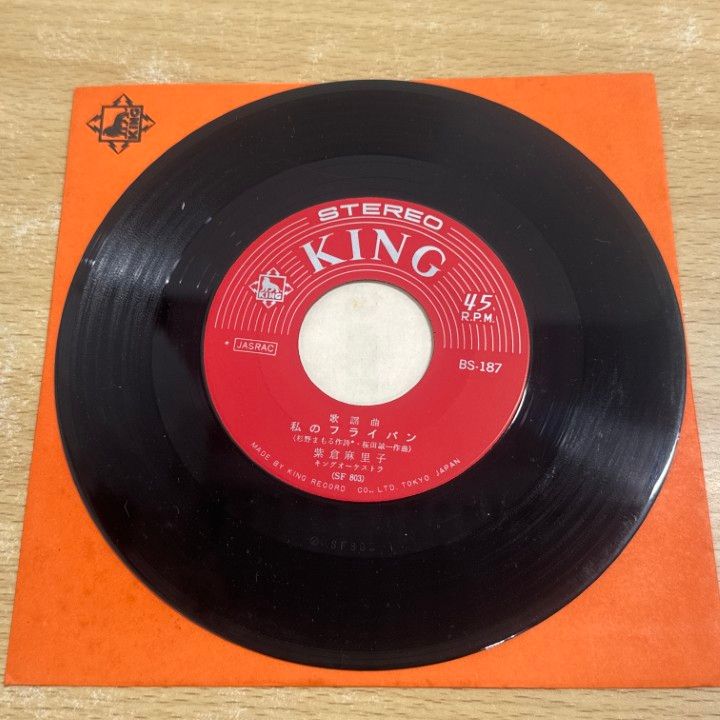 01 ! サイン入り 北見和夫 紫倉麻里子 街角の雨 私のフライパン EPレコード 7インチ 盤 BS 187 A