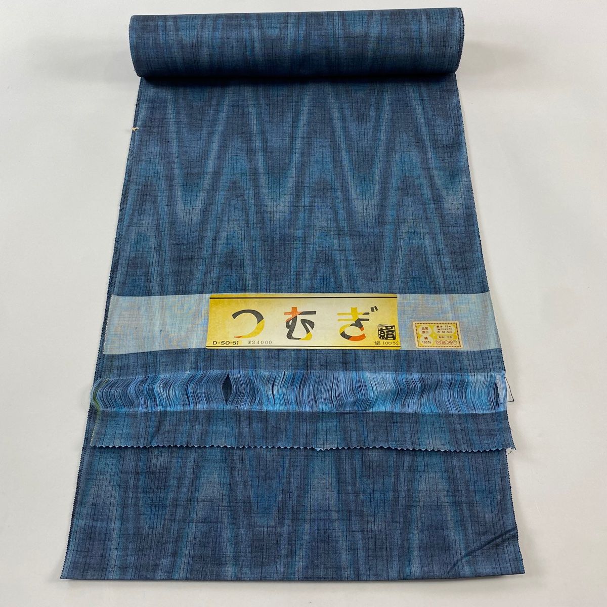 反物 秀品 紬 証紙 幾何学 ぼかし 青灰色 正絹