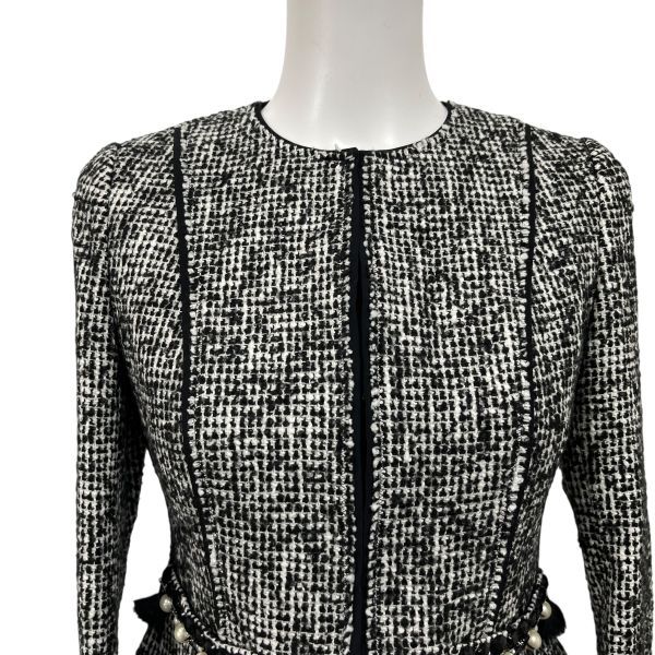 エポカ Epoca ツイード ジャケット ノー 上着 羽織り パール ビジュー 黒 白 毛 綿 38 M 9号 レディース S 5 W 266