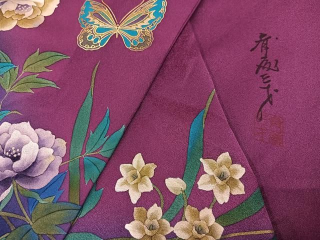 平和屋着物 染色作家 斉藤三才 訪問着 花蝶文 暈し染め 金彩 正絹 ph