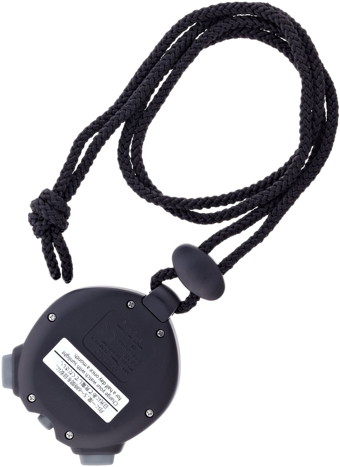電地交換の必要がないソーラー充電ストップウォッチ。フル充電後、光の当たらない状態で約24ヵ月バッテリー持続。大容量300メモリー搭載。