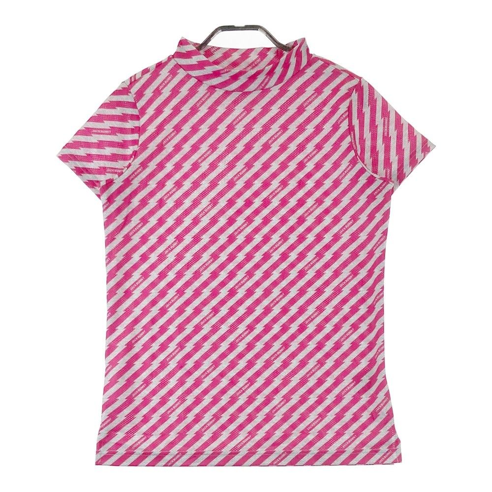サイズ 2 JACK BUNNY ジャックバニー モデル ハイネック 半袖Tシャツ ロゴ 総柄 ピンク系 ゴルフウェア レディース ストスト