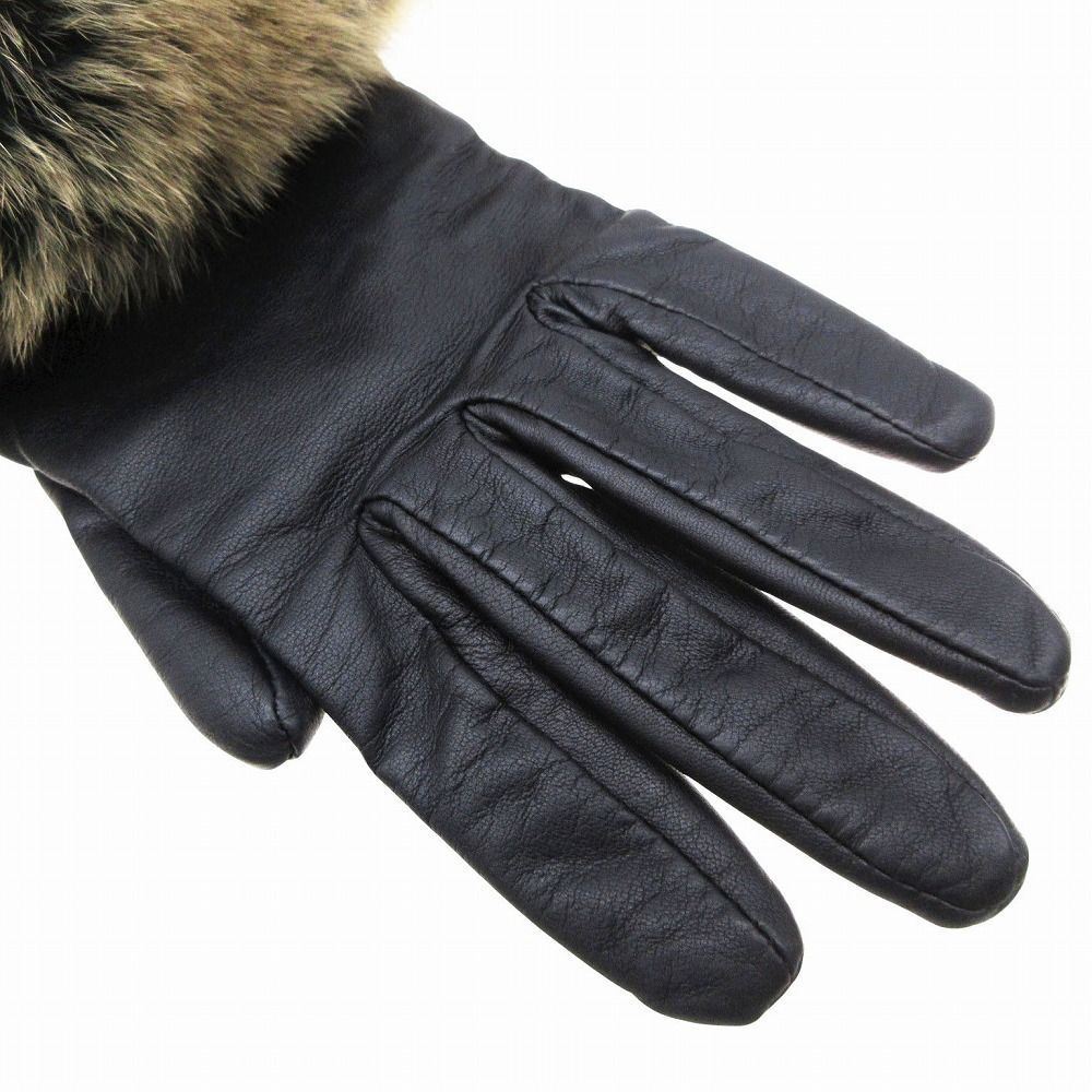 CHANEL シャネル レザー グローブ 染め フォックスファー付き 手袋 裏カシミヤ100% サイズM ブラック 黒 レディース TNT