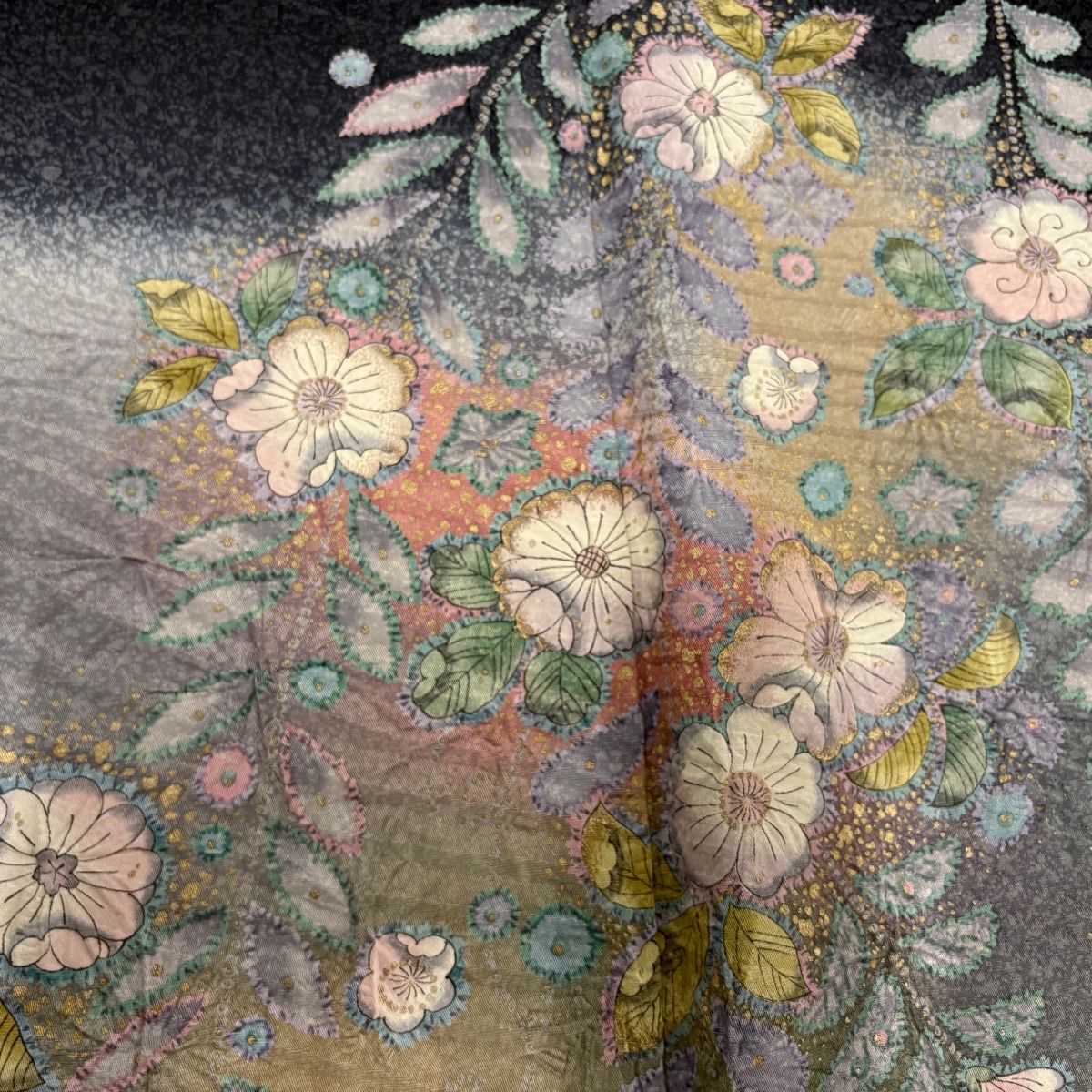 訪問着 身丈164 cm 裄丈67 M 袷 ますいわ屋 辻が花 金彩 ぼかし 墨色 正絹 秀品