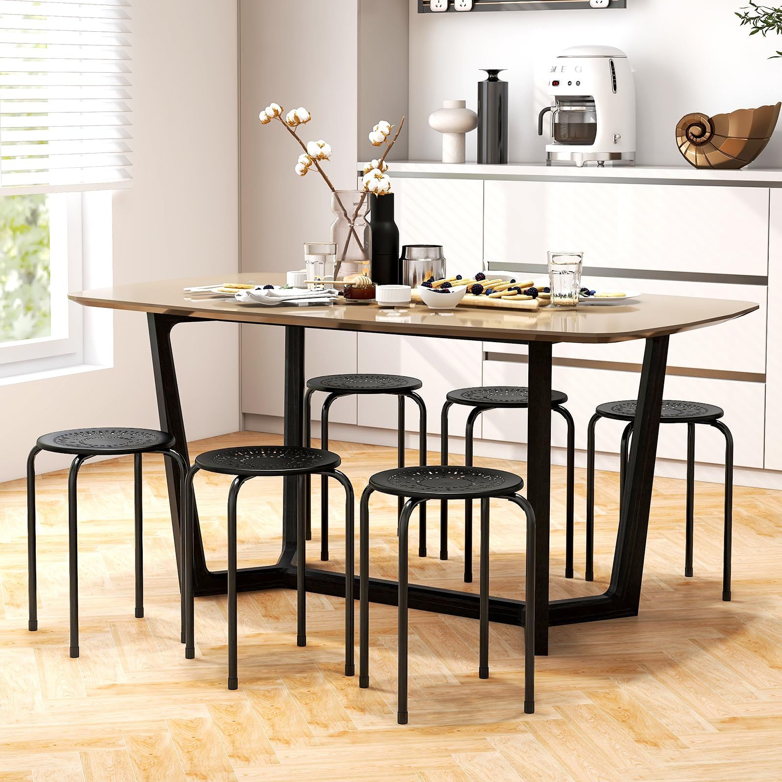 GIANTEX パイプ椅子 丸椅子 6脚セット 金属製 完成品 幅30X奥行30X高さ44cm 積み重ね可能 スタッキングチェア オフィススツール スチールフレーム 頑丈 通気 軽量 家用 来客用 コンパクト ガーデン オフィス 屋台 飲食店 (ブラック)