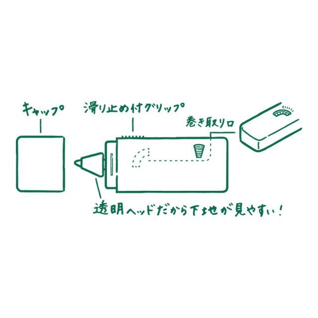 詳細情報持ち運びに便利なミニサイズ。透明ヘッドで下地が見やすい修正テープです。