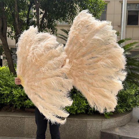 ナチュラルピーチピンケダチョウ七面鳥の羽ファン 100 130 センチメートル折りたたみ式手持ちプルームファン飾る パーティーベリーダンスファン 0