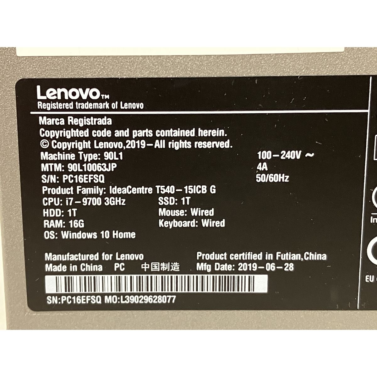 こちらは「LENOVO IdeaCentre T540 90L10063JP デスクトップ パソコン i7 9700 16GB SSD 1TB GTX 1660 Ti win11 新品 」でございます。