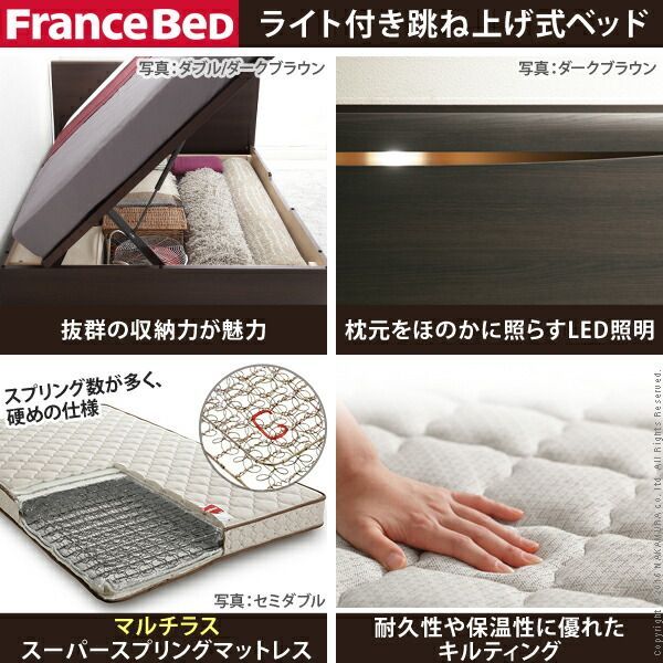 フランスベッド ライト 棚付きベッド 〔グラディス〕 跳ね上げ横開き ダブル マルチラススーパースプリングマットレスセット ベッド 木製 棚 国産 収納 跳ね上げ式 横開き コンセント マットレス付き 高密度連続スプリング 防ダニ 抗菌 防臭 寝具