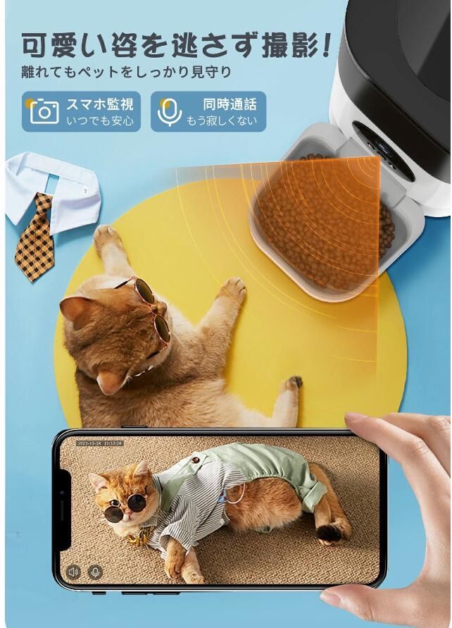 自動給餌器 カメラ付き 猫 犬 給餌器 自動餌やり機 4 L大容量 遠隔操作 ペット 留守番 スマホ操作