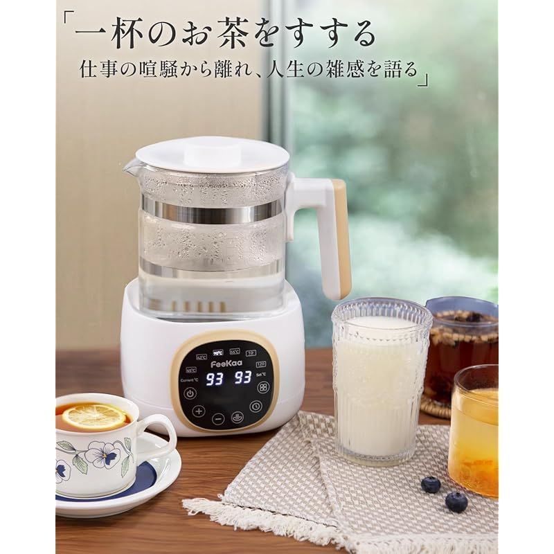 Feekaa 電気ケトル ガラス ケトル温度調節 1℃ 保温機能付き 予約 1.3 L 湯沸かしケトル お茶 コーヒー 粉ミルク お湯 インスタントラーメン 電子ケトル 調乳ポット 耐熱ガラス 茶漉し 1