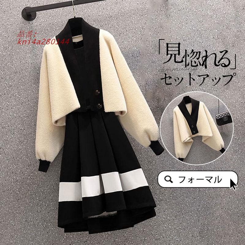 セットアップ レディース ニットワンピース 上下セット 膝丈 カーディガン ロング丈 冬 卒業式 セーター 体型カバー 秋 カジュアル kni 4 a 280144