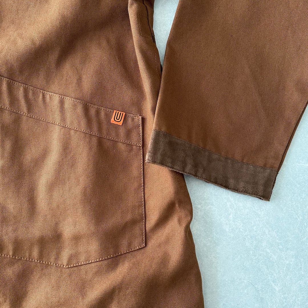 【UNIVERSAL OVERALL】ユニバーサルオーバーオール ロングワークコート ブラウン XL 新品 メンズ 新品男子 ブランド新品 アメカジ新品 ワークウェア ワーク新品 ベルベット切り替え オレンジ アクセントカラー カバーオール