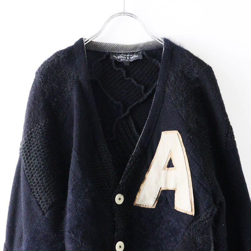 【品名】ジェフリービースモール GEOFFREY B.SMALL パッチワーク ニット カーディガン M|ブラック 羽織 切り替え