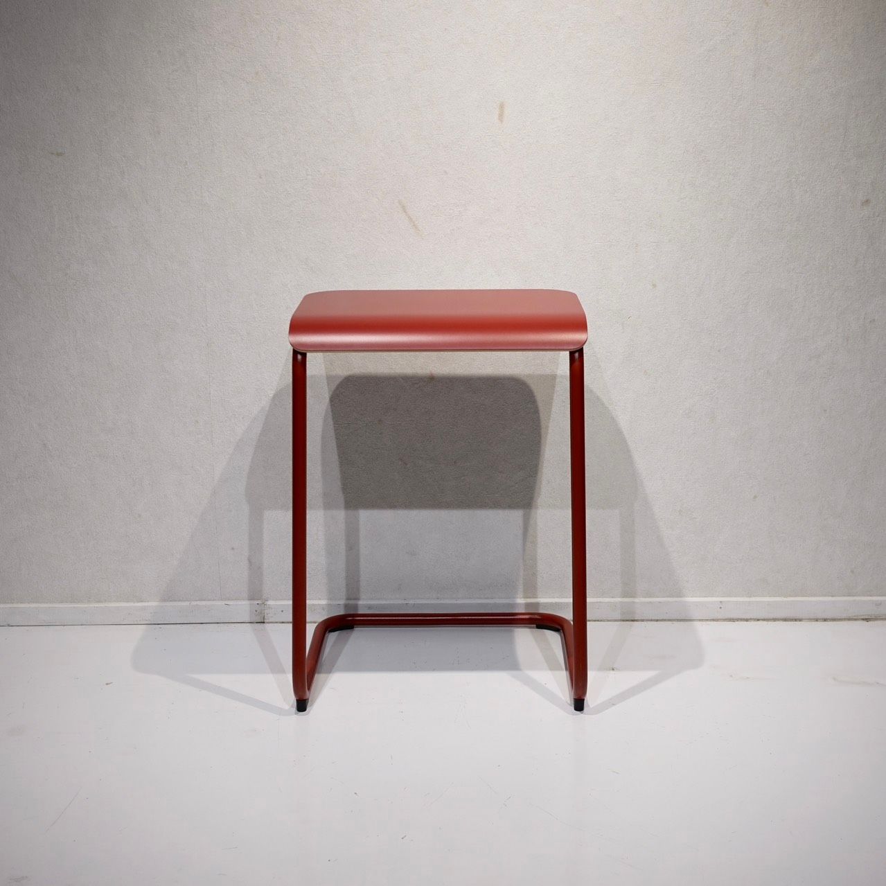 レッドのフレームと天板は空間に明るさを添え、モノトーンの部屋に差し色としても映える存在。