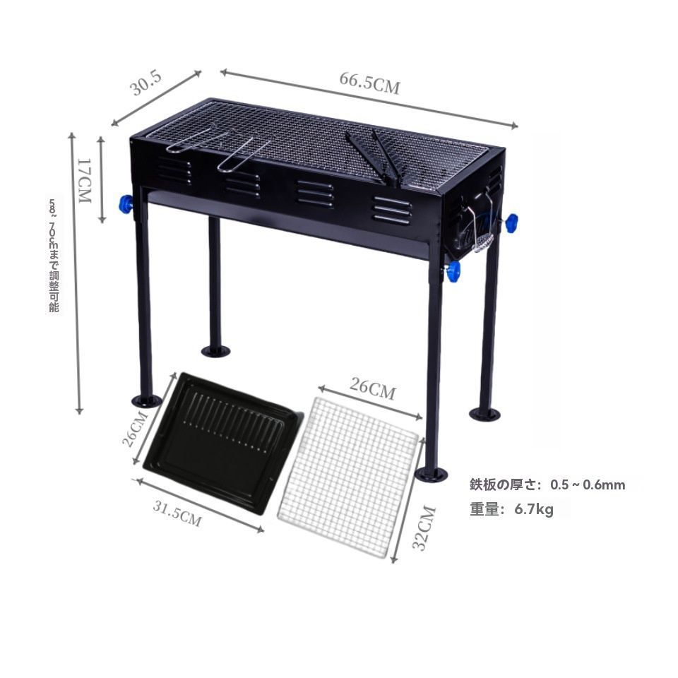 多用途: バーベキューはもちろん、野外キャンプやピクニック、庭での使用にも最適。どこでも手軽に炭火焼きが楽しめます。