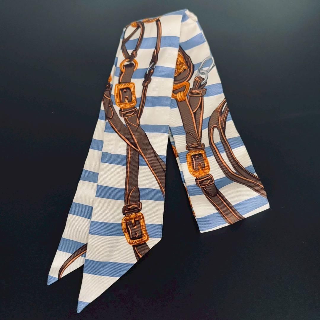 エルメス HERMES ツイリー スカーフ ストライプ BRIDES de GALA 式典用馬勒 き ベルト柄 プリント ボーダー