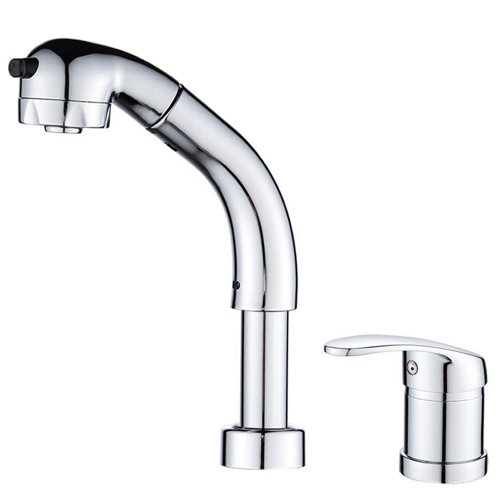 Maynosi 洗面台蛇口 洗面水栓 ツーホール式 洗髪用 シングルレバー混合栓 2穴台付き ホース引き出し式 2つの水流モード 360°回転 吐水口昇降 取り付けホース付き 真鍮 研磨