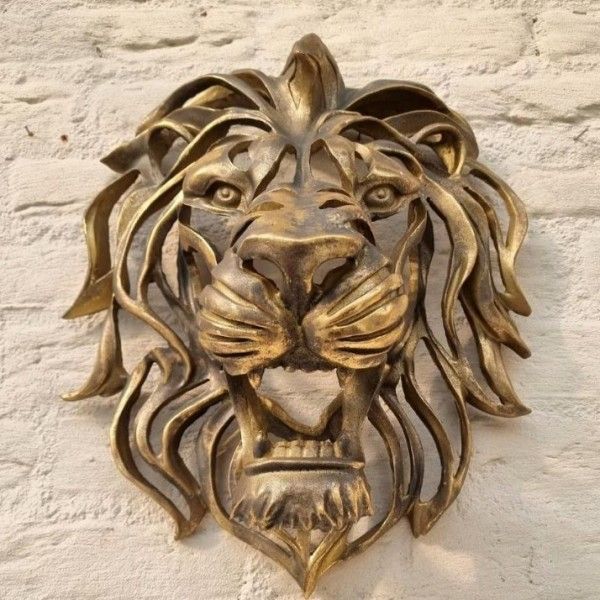 壁飾り インテリア ウォールデコ ウォールアート 壁面装飾 ウォールオーナメント 吊り下げ式 アートデコレーション ライオンヘッド 大型 ゴールド お洒落 おしゃれ クール カッコイイ 玄関 リビングルーム ダイニング ポーチ 寝室 書斎 廊下 屋外1 P