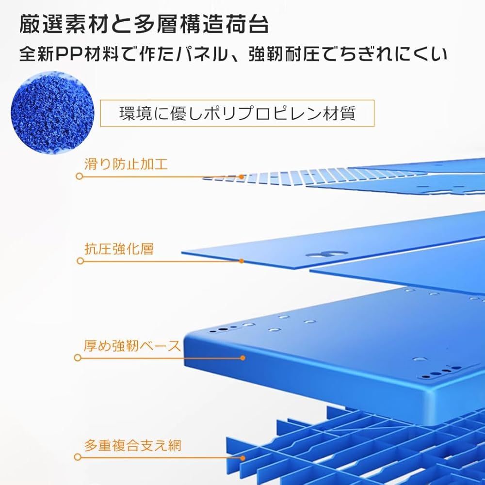 【頑丈で高耐荷】環境に優しぃ環保PP(ポリプロピレン)素材と亜鉛メッキスチールを採用しています。ポリプロピレンは、熱や水にも強く、変形しにくい素材です。軽量でありながら強度や耐久性に優れています。亜鉛メッキは耐火耐湿機能があります。この両方でつくたから、我が社の台車の耐荷重が強くて、耐衝撃性、耐腐蝕性、カビ防止と耐用年数も優れています。落下防止のかご付きでもっと抜群な安全性があります。