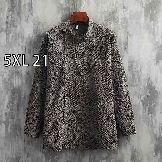 5 XL 21 秋冬 コーデ メンズ 服 シンプル ファッション オシャレ 大人 かっこいい 大きいサイズ ストリート 紳士服 パイソン柄 ジャカード 長袖 シャツ ウェア スーツ