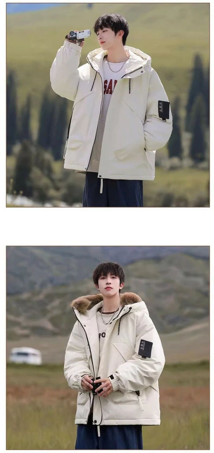 ダウンコート ミドル丈 ダウン90% メンズジャケット ブルゾン ファーのフード付き ファー脱着 ファスナーで裾の部分外し ダウンジ