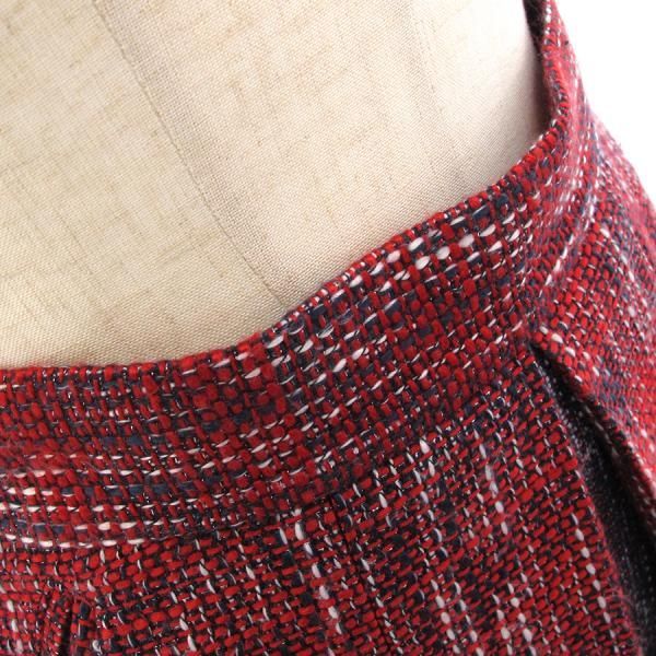 ■採寸#38丈49cmW67cm■素材表地ポリエステル50%アクリル50%裏地キュプラ100%別布合成皮革ワンボックスのツイードスカートが入荷致しました。赤のお色に真ん中がネイビーカラーとなっており、キュートで上品です◎ウエスト部分、身頃やサイド等、全体的に起毛感があり、ウエストにしわ・よれ感がありますが目立った汚れやダメージはなく、お買い得です!Aラインで可愛らしいデザインです。