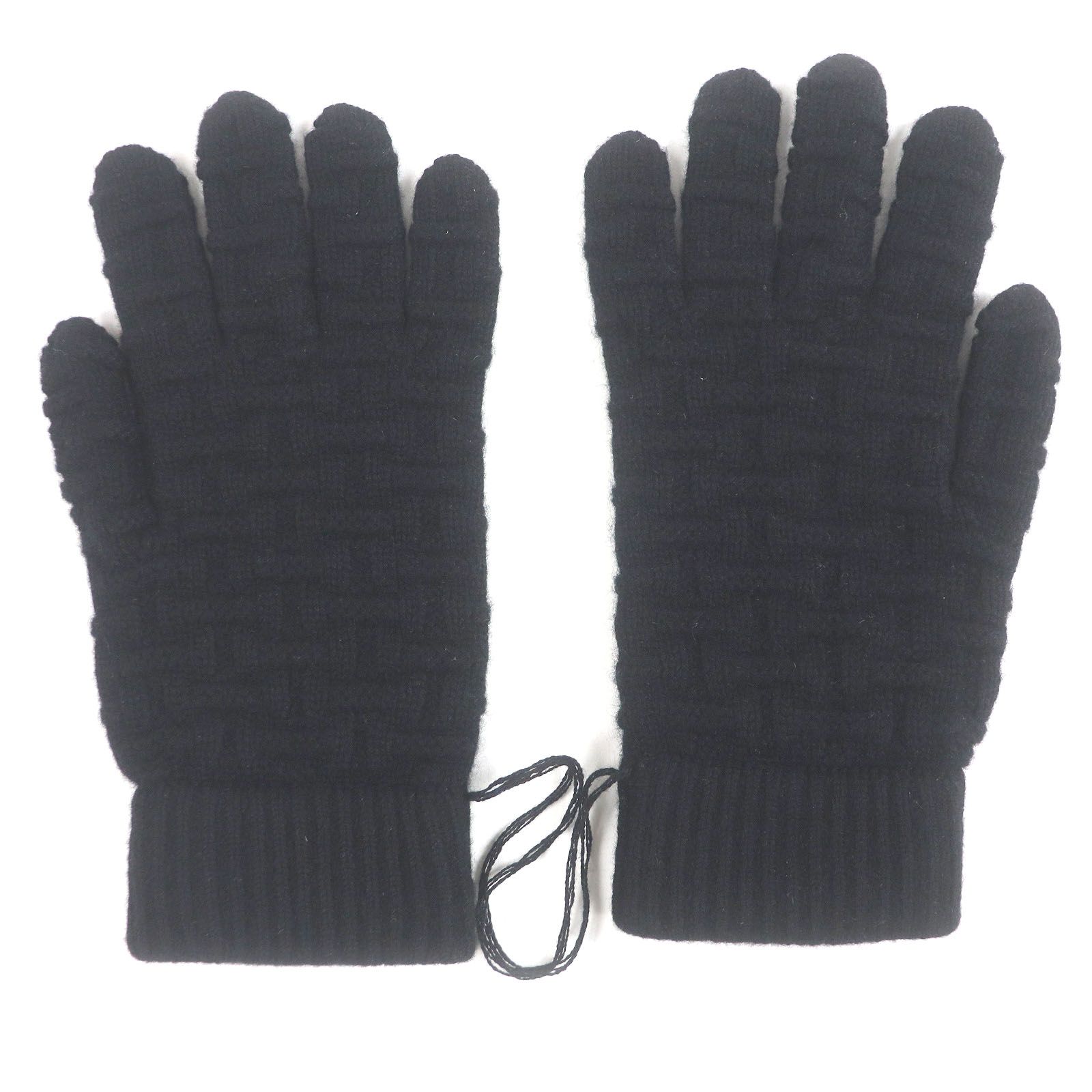 HERMES エルメス カシミヤ100% Hロゴモチーフ 総柄 ニットグローブ 手袋 ブラック L き イタリア製 メンズ レディース