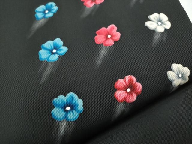 平和屋着物●塩瀬 九寸名古屋帯 舞花文 黒地 正絹 hy