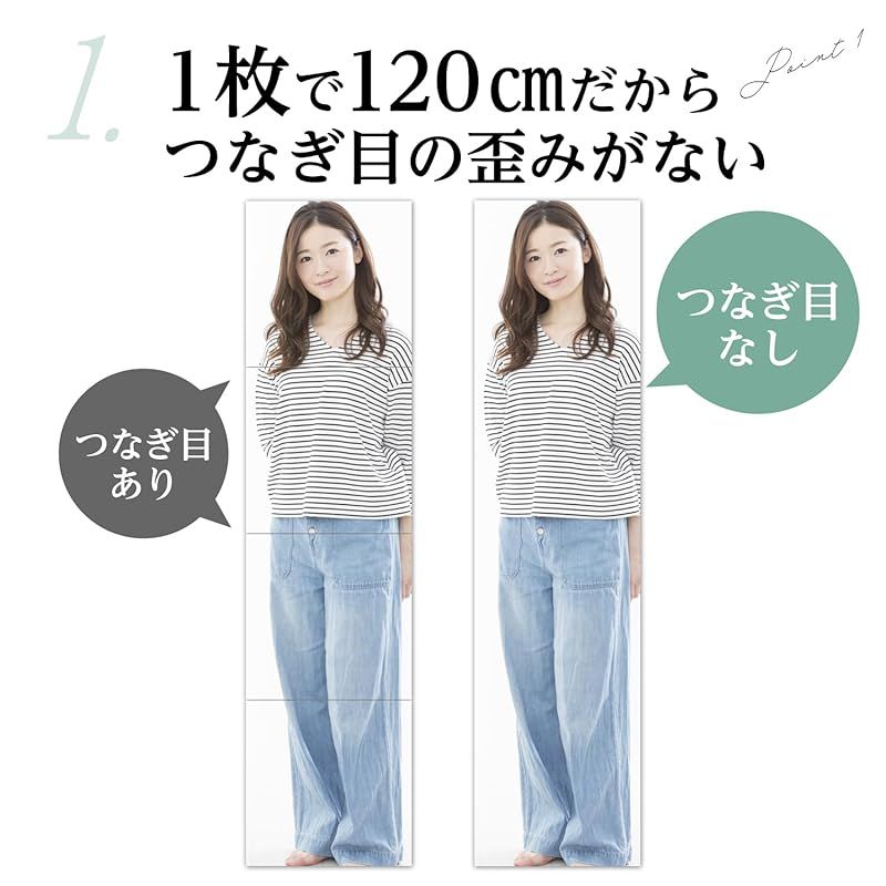 ??万が一、商品が破損して到着した場合は、お気軽に当店まで直接ご連絡ください。破損したミラーについては迅速に、返品なしで代品をお送りいたします。?【新登場、1枚で120cm】お客様のご要望に答え、一枚で姿見に使える大きいサイズが新登場!つなぎ目がないので貼りやすくつなぎ目のずれがありません!