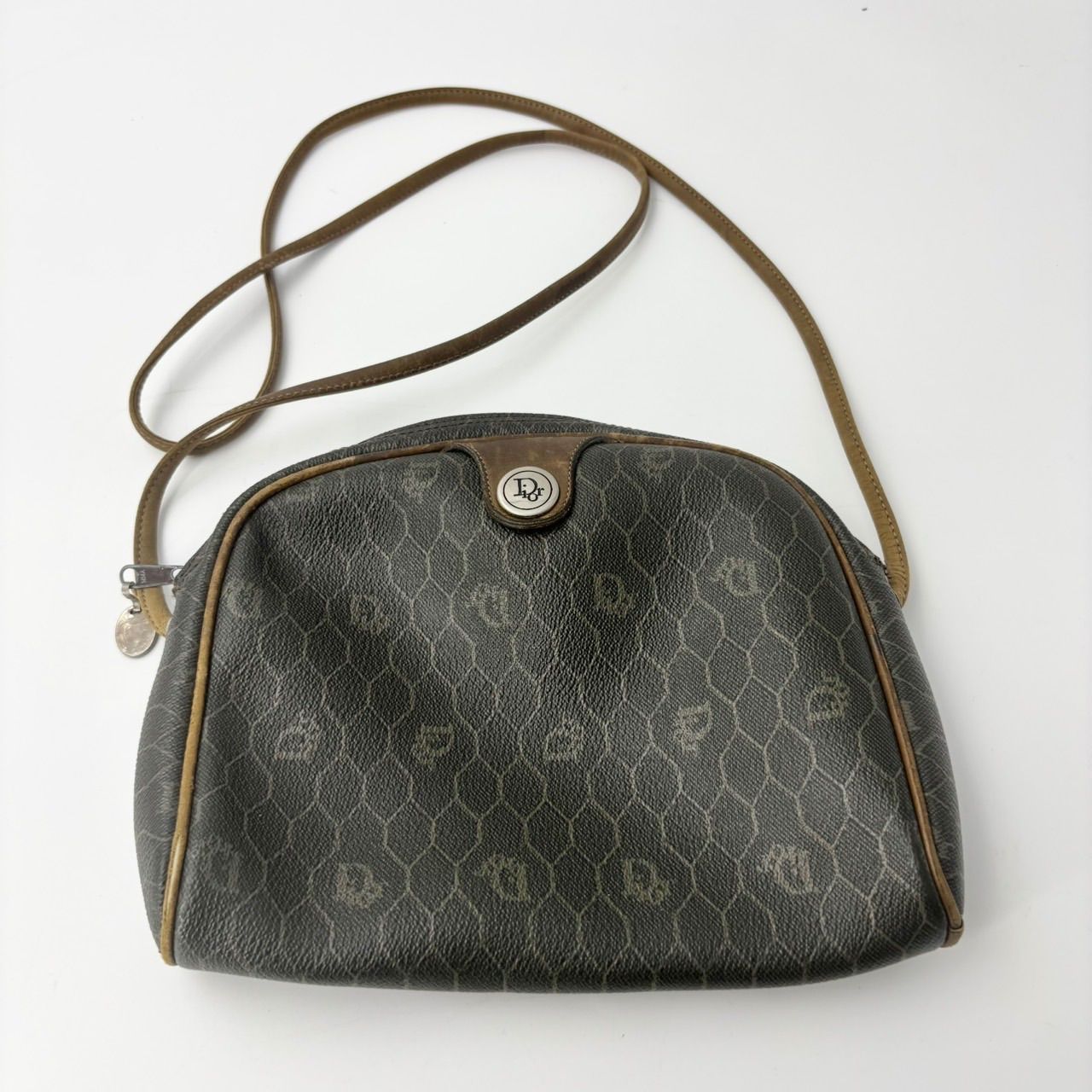 Christian Dior クリスチャンディオール ハニカム 柄 レザー 本革 ミニ ショルダーバッグ ポシェット ブラウン 茶 1401