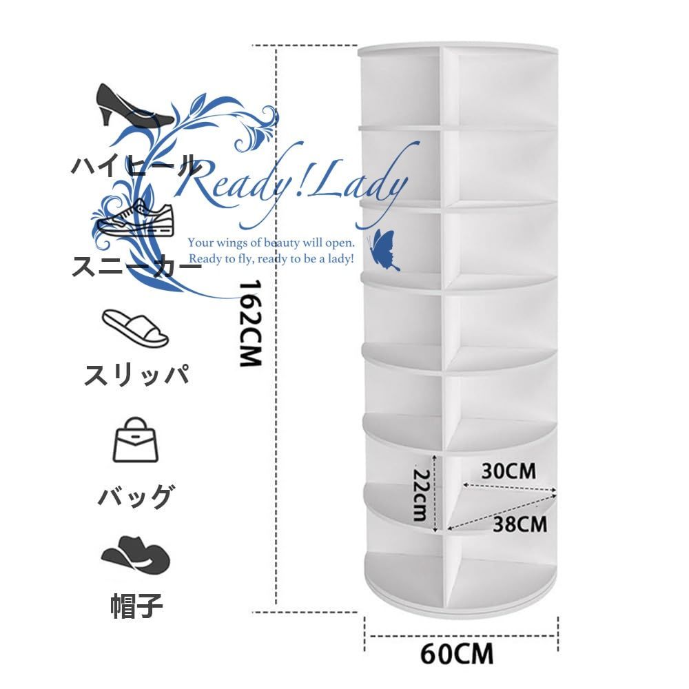 シューズラック 回転式 靴棚 靴ラック 省スペース 360°回転収納ラック 靴 バッグ 本の収納に使用 回転下駄箱 PVCボード素材 簡単な組み立てと簡単な掃除 7階