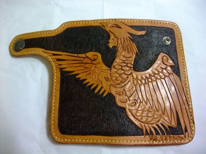 鳳凰 不死鳥 カービング長財布 栃木レザー ロングウォレットシルバーコンチョ