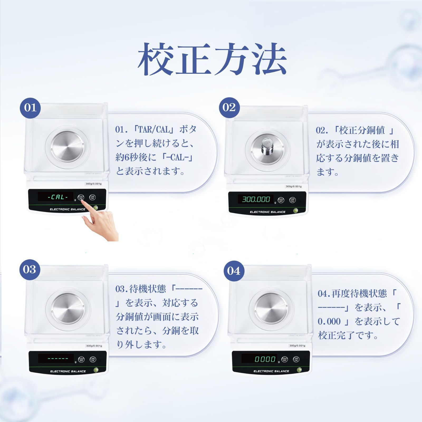 0.001g高精度 - ご注意:精密はかりを使う時は、プラグで電源に接続しなければなりません。精度:0.001g 測定範囲:300gまで測定できます。本デジタルはかりは高安定性センサーとシングルチップのマイクロコンピュータを採用し、計量は高速です。