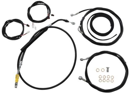 セット内容:クラッチケーブル、ブレーキライン、Plug-and-Play延長ハーネス、T字型ブレーキラインジャンクション、バンジョーボルト、フィッティング、クラッシュワッシャー