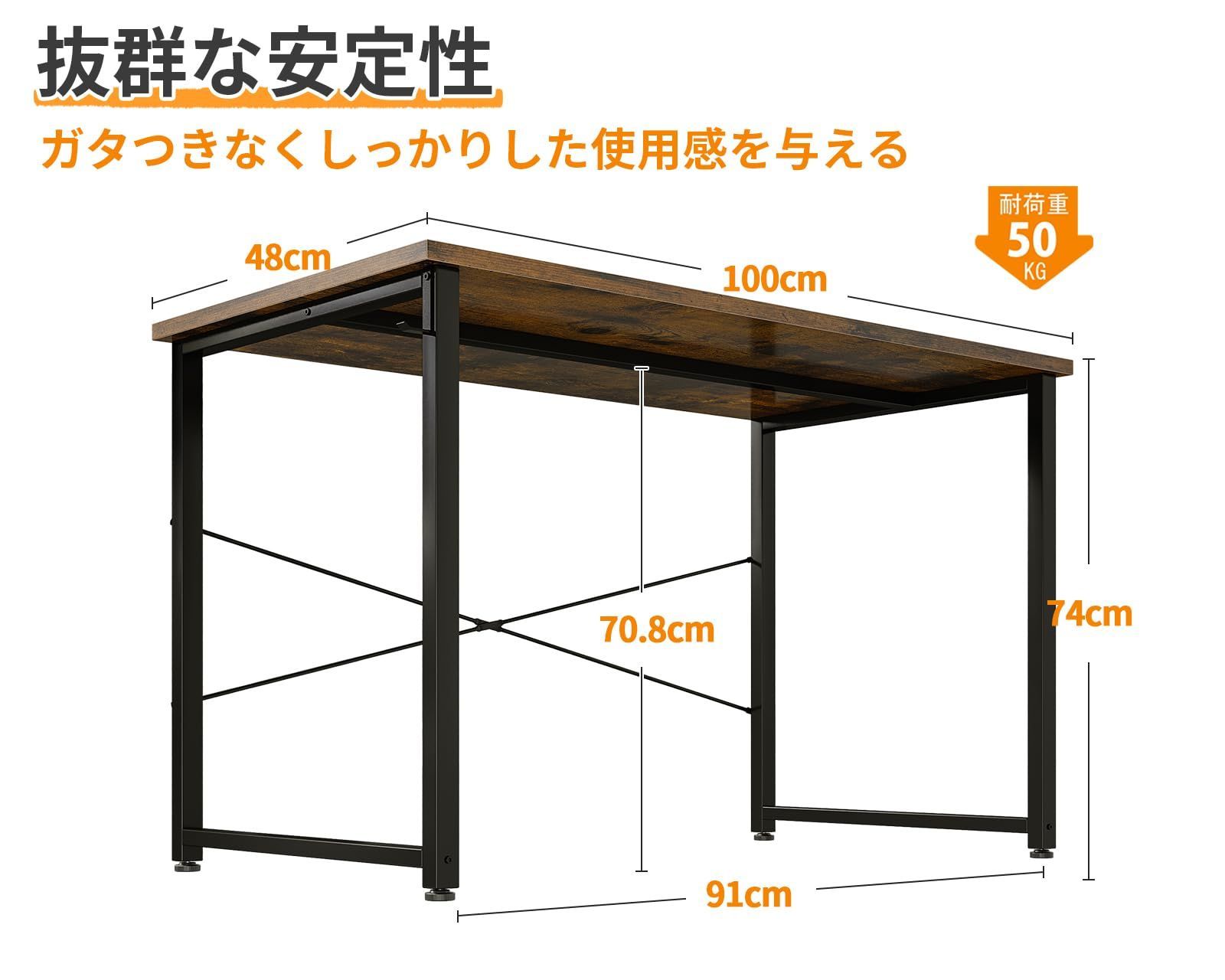 【商品仕様】シンプルでインテリアに馴染むおしゃれなデスクです。◆本体サイズ:幅100×奥行48×高さ74CM | 本体重量:7KG | 日本語組立説明書あり | お客様組立て品で、レンチも付属しており、別途で工具を買う必要がないです。